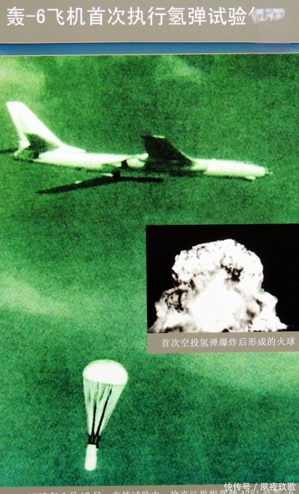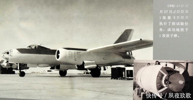 (2) 1965年5月14日,第二次核试验,也是第一次空投核试验,由轰-6型轰炸机4201号投放原子弹空爆成功,爆炸当量为3万吨。