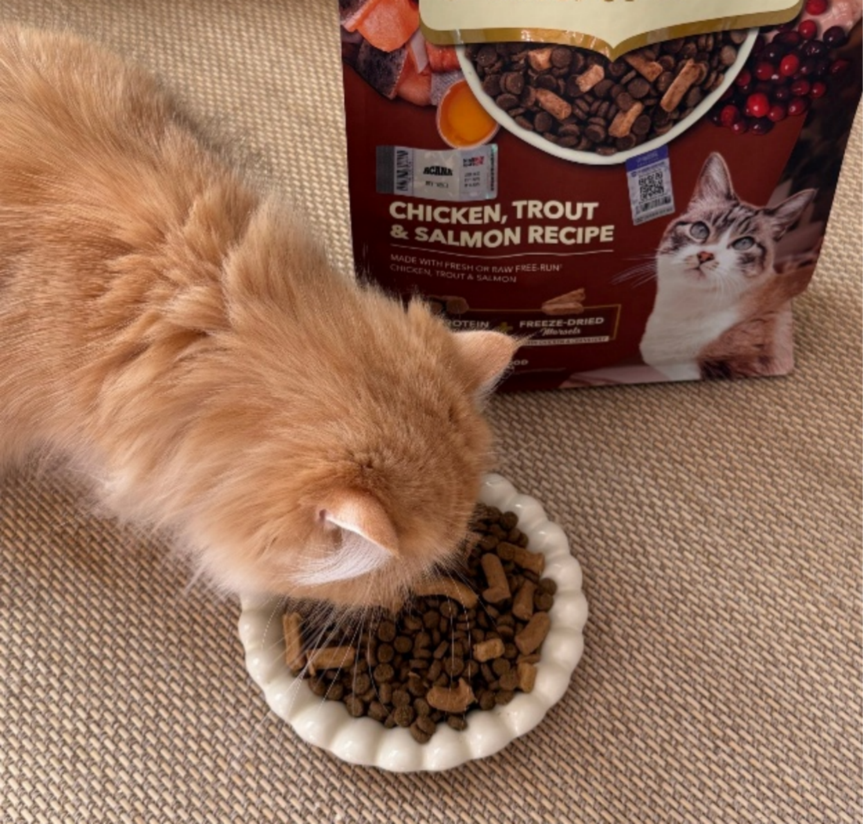 本次爱肯拿“双拼倍护猫粮”系列首发,共推出鸡肉与鸭肉两款配方。鸡肉款包含6种优质白肉,以高蛋白配方支持猫咪体态维持,并搭配有北美蔓越莓冻干增加适口性;鸭肉款选用5种白肉,主要采用易消化吸收的鸭肉蛋白,搭配25%天然果蔬,有助于减轻肠胃负担。
