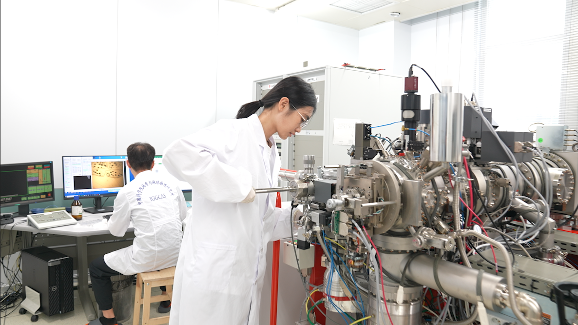 地质地球所科研人员向离子探针中装检测样品